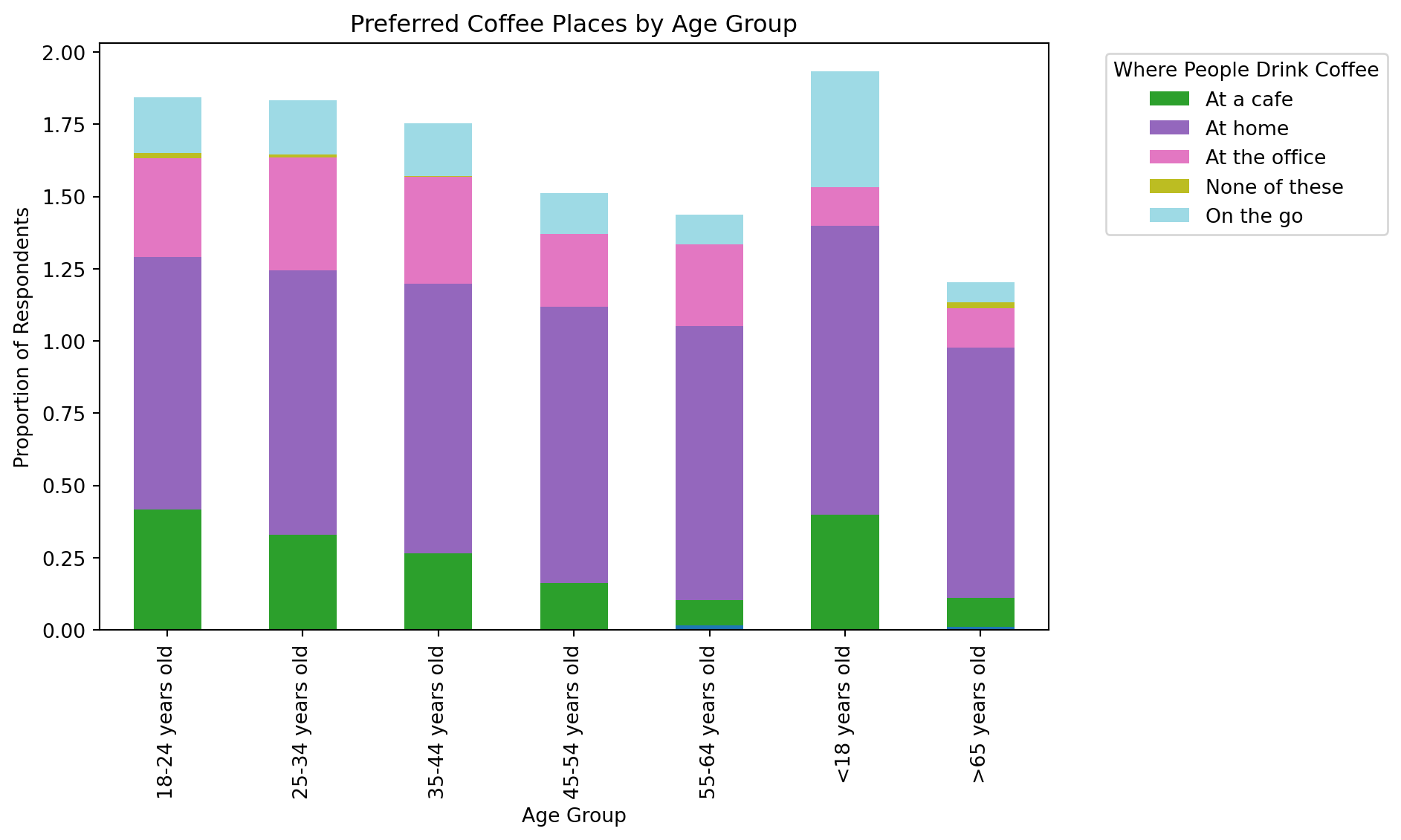 # Objective: Considering age, where to drink, favourite, and style of drinking coffee to help starting new business