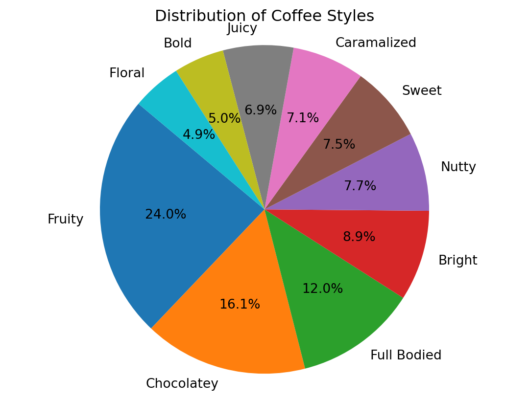 Pie chart, distribution of coffee styles
